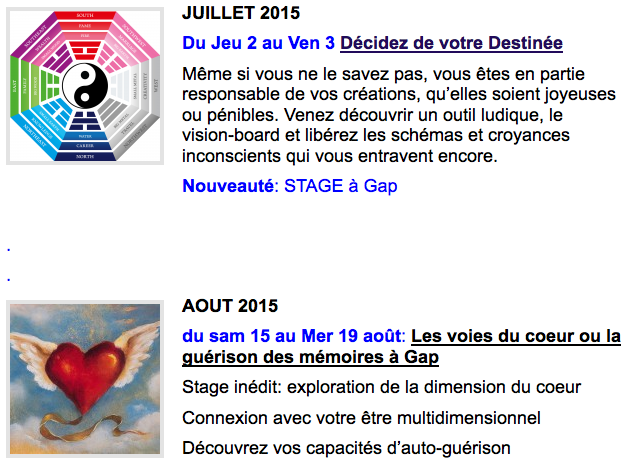 Bonjour Hannah j’aime relire tes articles . Celui ci m’intéresse énormément car depuis 9 mois maintenant je suis en train de soigner la moitié de mes dents. Depuis nôtre dernière rencontre je n’ai pas arrêté de libérer des mémoires qui s’étaient cachées dans les racines de mes dents.j’ai dû faire retirer de nombreux kistes. J’ai évacué des souffrances et à présent je me sent libérée.. Merci pour tes conseils, ils me sont bien utiles. Je prends aujourd’hui le temps de me poser au bord d’une piscine de Floride (août 2015) bises Brigitte