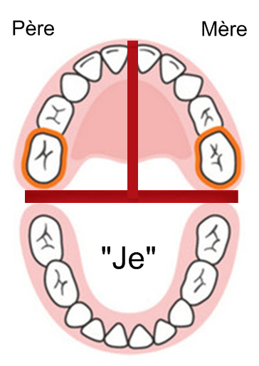 Lorsque je me suis penchée sur le décodage dentaire, j’ai regardé ma bouche devant le miroir et j’ai été stupéfaite : les deux dents qui ont des plombages sont en exacte symétrie.