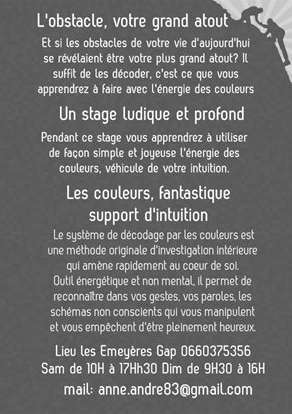 du sam 14 au dim 15 Stage couleurs: Apprenez de vos obstacles
